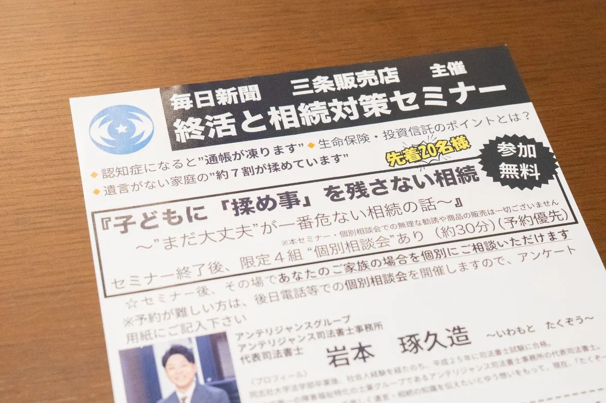 ご自身の財産をどのように次世代へ引き継いでいくか、また、ご家族に余計な負担をかけないためにはどうすると良いか。そうしたことを元気なうちから考えておくことは、とても大切なことです。将来の相続に備えたいとお考えのお客様からのご相談も承っており、例えば遺言書の作成や生前贈与といった具体的な選択肢について、助言が可能な専門家へと京都市にて繋ぎます。お客様が未来への不安を少しでも減らし、安心して日々を過ごせるよう、生前の準備に関する相談の機会を設けております。