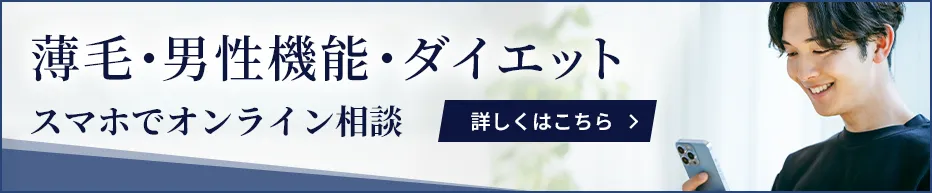 さらに、薄毛などデリケートなお悩みは、外出せずに相談できるオンライン診療のご案内にも対応しています。まずは気軽にご相談ください。